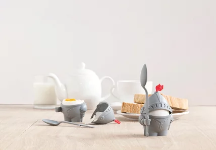 Who wouldn't want an egg in shining armor? Though no amount of headwear can protect a soft-boiled egg from its breakfast fate.