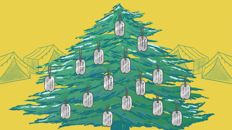 But there were also Christmases spent deployed on bases in Iraq (Margaret) and Afghanistan (Jay). "You're in the middle of nowhere," Margaret recalls. It was here that she celebrated Christmas in 2008, with a buffet of classics like turkey and sweet potatoes, and even a large ice sculpture in the shape of a dragon that somehow managed to not melt over an eight-hour day. "It's something that's a big deal in the Army," she says of the ice sculptures. "I remember thinking it was really funny. . . . Everything is not the way it would normally be."