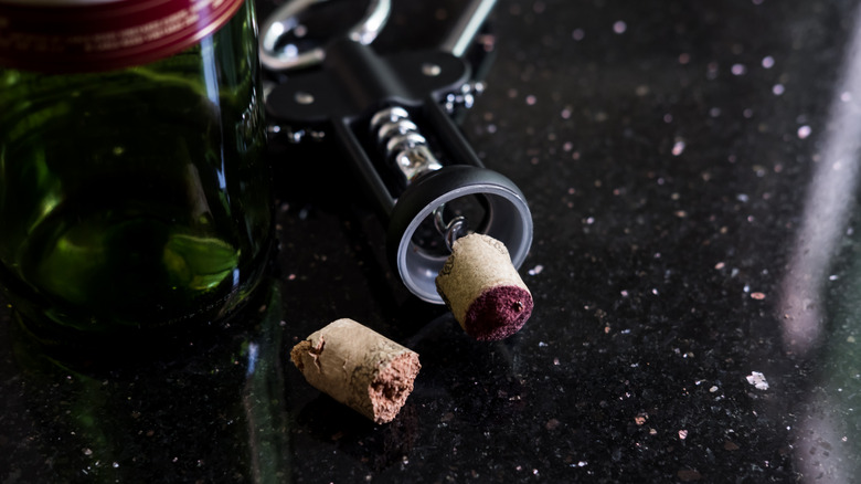 It's happened to the best of us — you're ready to dig into a luscious bottle of wine, and just as you're about to pull the cork out, prepared for that soft, satisfying pop, you hear the sound of the cork splitting in two. While you may be tempted to reach for an electric drill to get what's left of the cork out of the bottle, there are some more efficient (and safer) methods.