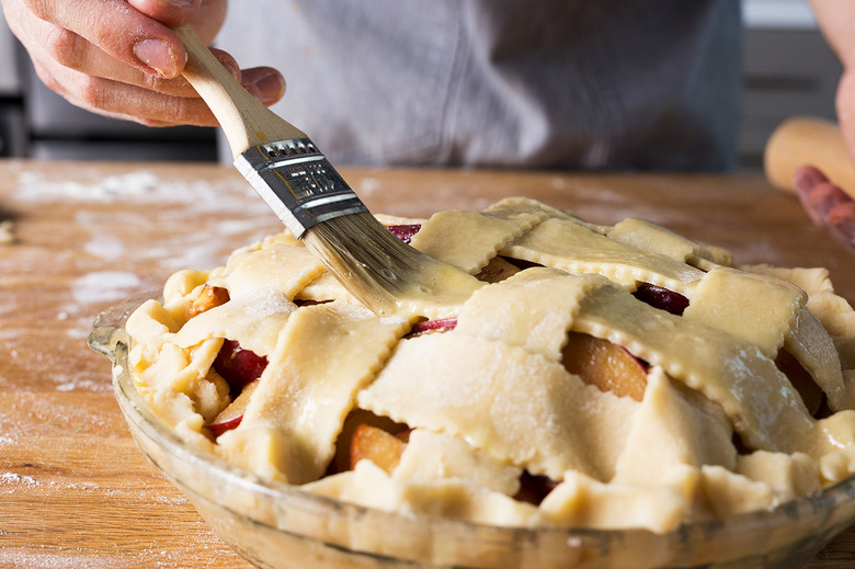 Brush the entire surface of the pie with an egg wash, making sure to get into every crack.