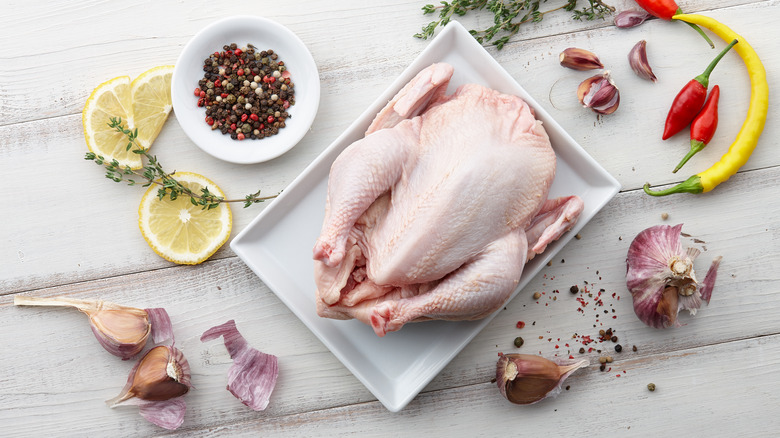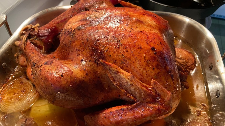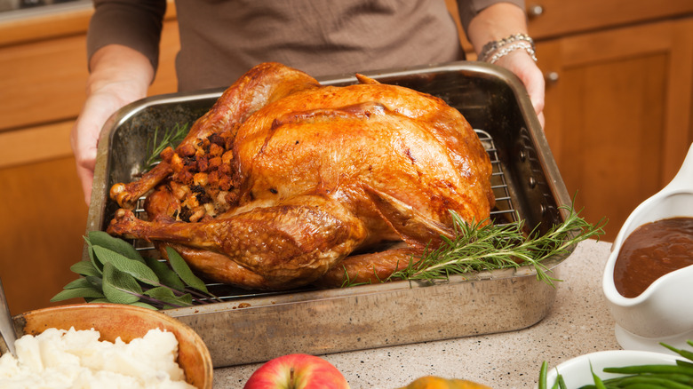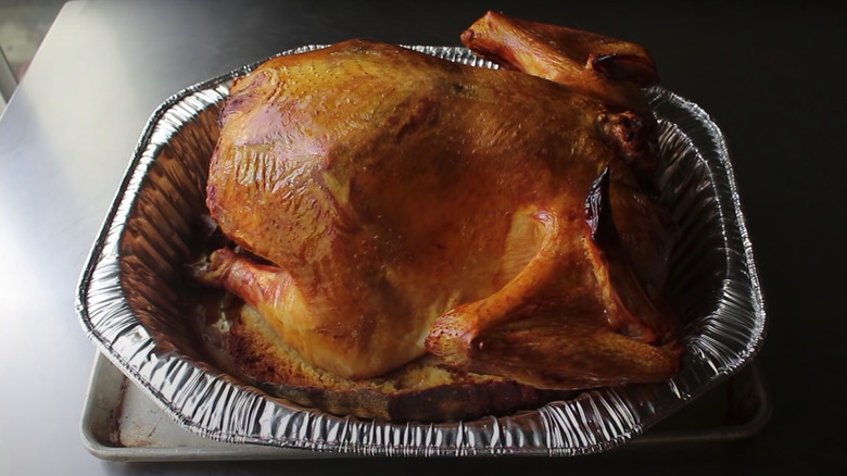 For this one, you'll cut down both sides of the spine. Then, you'll use your upper body weight to push down with both hands until the chest bone cracks. While the process might initially make you feel a little squeamish, it's actually more straightforward than it sounds. In fact, some grocery stores offer pre-spatchcocked turkeys for convenience. Preparing your turkey in this manner ensures even cooking, resulting in a moist and flavorful bird. Plus, spatchcocking is versatile and can be effectively combined with any brining method you choose, enhancing the overall cooking experience and the deliciousness of your final dish. Even if you aren't cooking a turkey later in the year, spatchcocking poultry is a technique you can use to create space in your oven and prepare a better meal.
