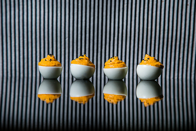 Don't limit yourself to just sweets this Halloween, but keep up the orange-and-black theme with this snack. Kimchi boosts the color (and funkiness) of the yolks to an orange that would make a pumpkin, er, green with envy, and a sprinkling of black sesame completes the color scheme.