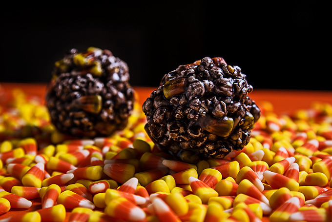 Even your popcorn balls deserve to dress up for the holiday. These ones are going as New York chic in their all-black costumes.