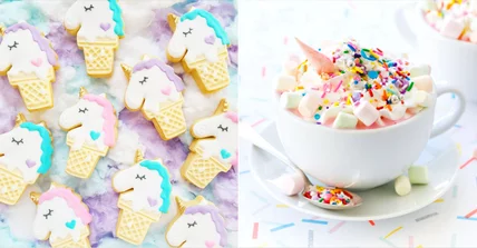 In all its cutesy, colorful glory, this abysmal viral food trend is basically every emo teen's worst nightmare. The phenomenon is achieved by taking perfectly delicious, mundanely-colored foods, like hot chocolate, milkshakes or chocolate bark, and doctoring them up to make them "magical." Think: swirly shades of pastel purple, pink, yellow and blue; piles of rainbow sprinkles; something called "fairy dust;" and, in the worst cases, delicately placed candy unicorn ears and horns. This, my friends, is the dreamy, mythical dessert phenomenon the Internet can't get enough of, and it must be stopped.