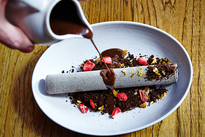 From Top Chef alum Richard Blais comes this bright spot serving modern California fare, as well as a surprisingly elegant iteration of the Drake's cake Yodels of our youth. Juniper and Ivy's Yodel features cocoa-dusted devil's food cake rolled with white chocolate and hazelnut brittle, and bathed in hot chocolate sauce.