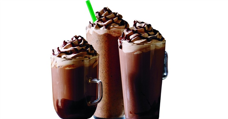 All of the drinks are made with similar ingredients: mainly melted "chocolaty chips," espresso or coffee, milk, whipped cream and an espresso mocha drizzle, but each is a touch different. The most chocolaty of the bunch is the Molten Hot Chocolate, which has mocha sauce and "chocolaty chips" melted into steamed milk and topped with espresso whipped cream and that drizzle. For those who live in warmer climes and want something cold, the Molten Chocolate Latte can be ordered iced or hot.