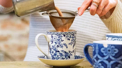To make it yourself, start by combining the milk of your choosing with the richest cocoa powder you can find. Then, grab a big pinch of lavender, massage it in with your fingers to release the aroma and mix it in. Use a milk steamer to warm the mixture or simply heat in a pan on the stove and whisk until frothy. Strain the hot chocolate into a mug and discard the lavender.