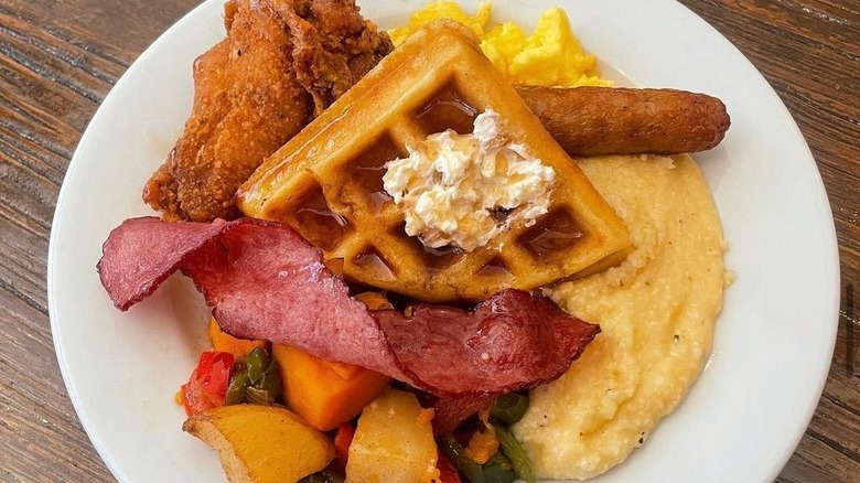 On the Granny's Restaurant menu, you'll find appetizers like peach bourbon wings coated in a housemade sauce, diced peaches, and a dipping sauce of your choice. For entrees, we recommend the absolutely massive chicken and waffles plate at Granny's. It's made with four (yes, four) chicken wings or tenders, buttermilk waffles dusted in powdered sugar with a cup of whipped butter. If you're feeling savory, order a bowl of grits with two eggs any style, breakfast side, and choice of bread. The portions are almost as big as the love these folks have for Southern cooking.