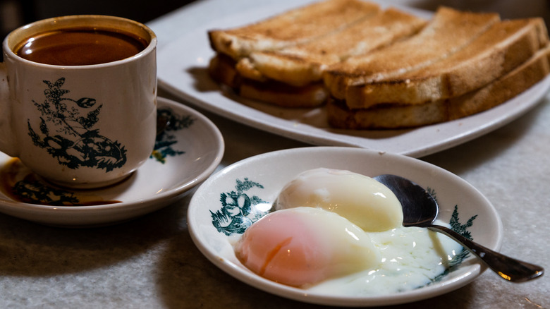 Kaya toast is a perfect breakfast food by nearly any standard, thanks to a texture and flavor that can satisfy a range of preferences. The dish is served as two pieces of toast spread with cold butter and kaya (a coconut jam) and intended to be stacked as a sandwich. Kaya toast often comes alongside a bowl of half-boiled, runny eggs. Mixed with dark soy sauce, the side serving is a pool for salty, rich dipping that can balance the slightly sweet and tropical nuances of the coconut-decked bread.