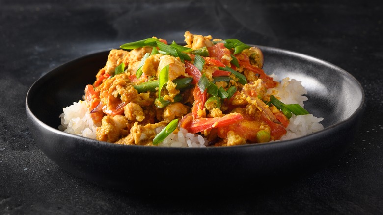 Many Asian stir-fries use tomato as a central ingredient as well. Chinese tomato and egg stir-fry, also called xīhóngshì chǎo jīdàn, is a popular dish in homes and restaurants across the country (via The China Project). While most recipes for this stir-fry meal use whole sliced tomatoes, others add a dose of tomato paste to boost the tomato flavor. The sauce can be reduced into a thick paste or made into a more soupy consistency with more water.
