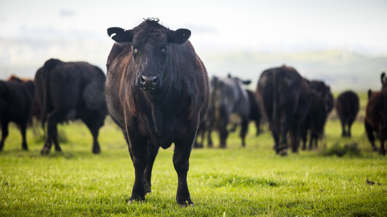 The Angus breed, also known as the Aberdeen Angus, is a Scottish cow bred for a high amount of muscle on its body. This translates to beef that is fattier, juicier, and more tender than other species of cow used for beef production. The cow comes in two primary colors, black (which you'll often see marketed on restaurant menus) and red. Both black and red Angus are the same species of cow, so their meat is nearly identical in flavor and texture.