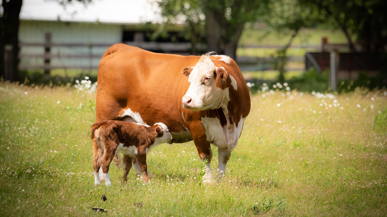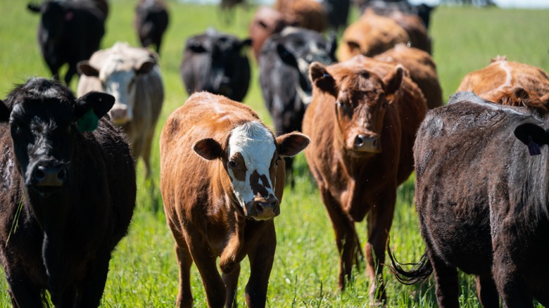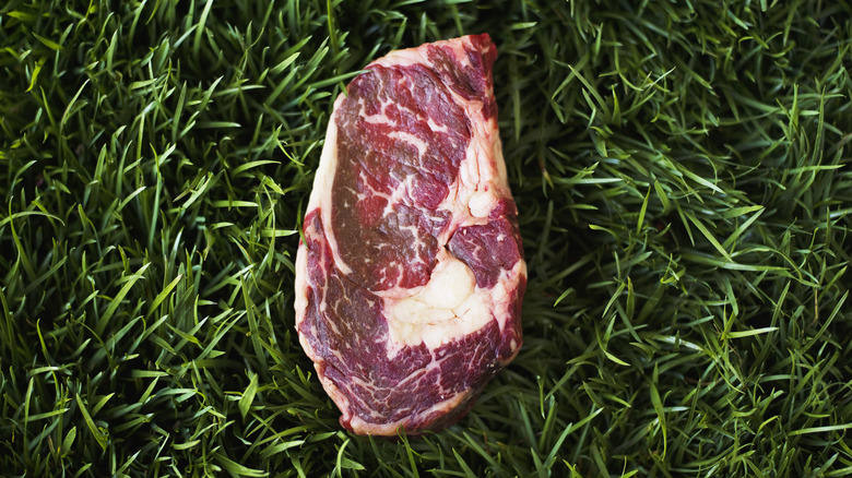 Animals are traditionally fed grain in the three to six-month period before slaughter to increase weight and muscle mass. According to Verde Farms, grass-finished beef is slightly healthier than grain-finished beef; it contains 20% fewer calories and higher levels of omega-3 fatty acids. However, grass-finished beef tends to have a gamey, lean flavor that differs from the subtle sweet taste of grain-finished cows. Cows that are grass-fed and grass-finished beef tends to be the leanest out of all the types, but the flavor of the meat can be modified depending on what type of forage the cow eats over the course of its lifetime.