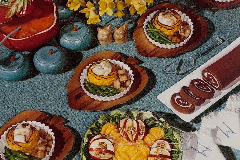 Nickolas Muray, Food Spread, Daffodils, McCall's magazine, ca. 1946; from Feast for the Eyes (Aperture, 2017)