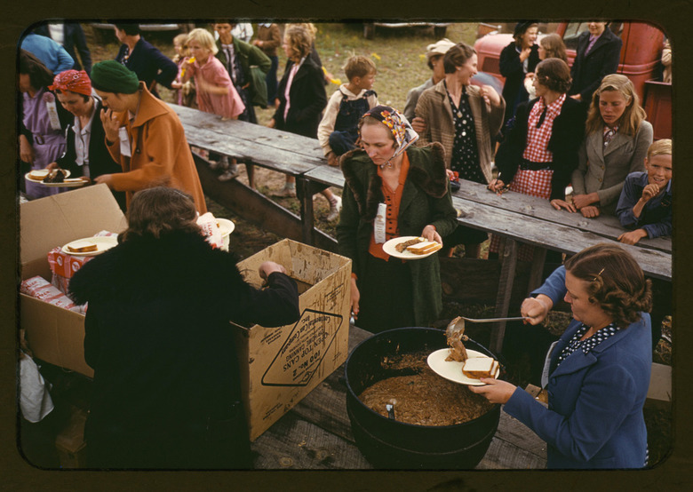 Russell Lee, Serving Pinto Beans at the Pie Town, New Mexico Fair barbeque, 1940; from Feast for the Eyes (Aperture, 2017)