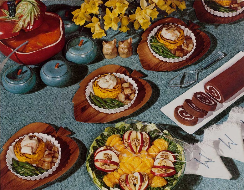 Bright also discusses how food, especially "cookbooklets" and cookbooks, have been scribed and photographed in a certain way to sell a gender-focused lifestyle. "Many cookbooks are still marketed mainly at women, though not as blatantly as they were," she says in an interview with British Journal of Photography. "Look at Jamie's 15-Minute Meals. Before you get to the recipes, there is a spread of photographs of [Oliver's] family." Bright says the photos signify how his wife has everything under control at home, serving her family delicious, healthy meals, even though she's busy, all while under the man's supervision.