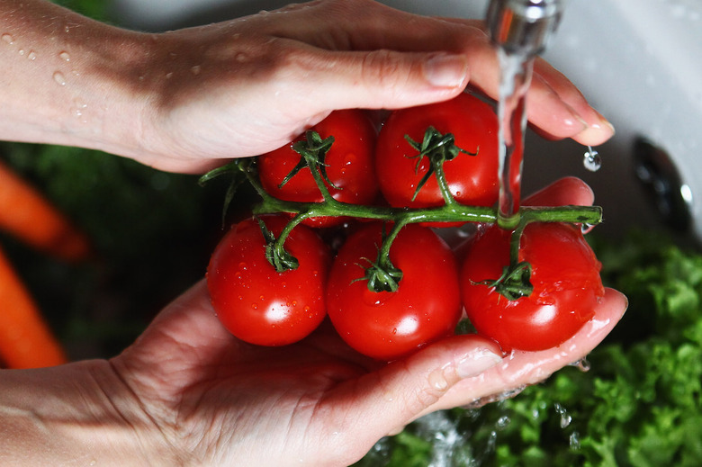 For our test, we cleaned four tomatoes using two commercial washes, Earth Friendly Products ($2) and Fit Organic ($23), as well as a homemade solution of distilled water, lemon juice and vinegar, and, finally, plain old distilled H2O. While the store-bought veggie washes did clean the produce as advertised, our homemade solution and distilled water did as well. There was no taste difference among the four tomatoes, and all visible residue came off using each method.