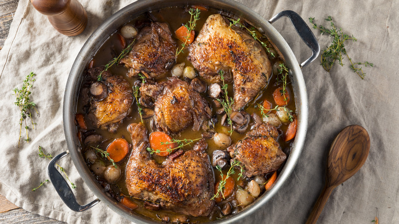 No, this isn't just for drinking. As long as you have a bottle (it doesn't have to be pricy!) of a dry red and a dry white wine on hand, you're only an enameled Dutch oven away from a classic French stew. Need something stronger? A brandy, such as cognac, is also a must-have for deglazing your pan or for making a boozy, liquored-up dessert.