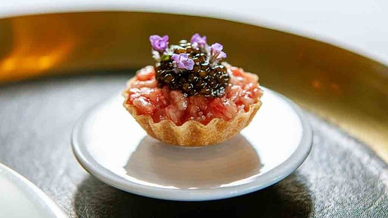 With such high praise comes a $225 per guest tasting menu and a two-month waiting list for reservations on average. Another $135 gets you a wine pairing by a Michelin-endorsed sommelier. If you want to bypass the line, you can book a private dining room for a six-course tasting that includes cocktails, sparkling wine, and canapes. According to Alo's Tock listing, that private experience comes with a $375 commitment predicated on a $200 deposit per person.