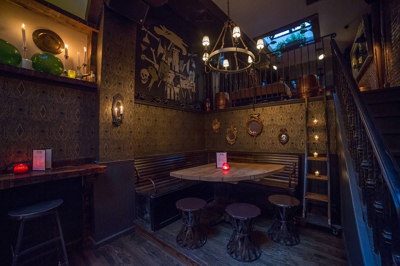 Step inside this gastropub on Houston Street, and you'll be transported onto a fancy pirate ship at once. The interior features a semi-upscale space decorated with antique steamer trunks, rope chandeliers, weathered trunks and old wooden ship parts hanging above the bar. Head for the staircase, which leads to a furnished lounge in the back.