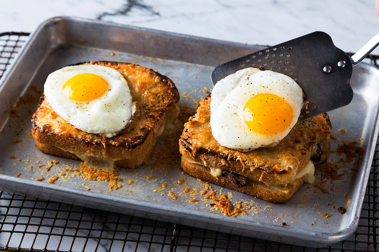 In this croque madame recipe from Jack's Wife Freda, duck bacon and Gruyère are sandwiched between sourdough that gets topped with a fried egg.