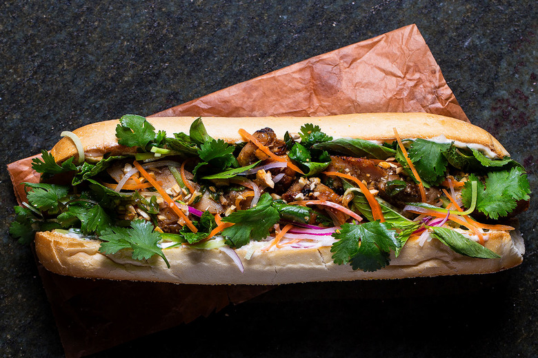 Lemongrass adds brightness to grilled chicken in this banh mi piled high with fresh and pickled vegetables and herbs.
