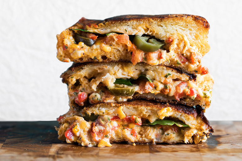 Spicy and tangy pimento cheese is layered with vine-ripe tomatoes and pickled jalapeños on focaccia to make the ultimate Southern sandwich.