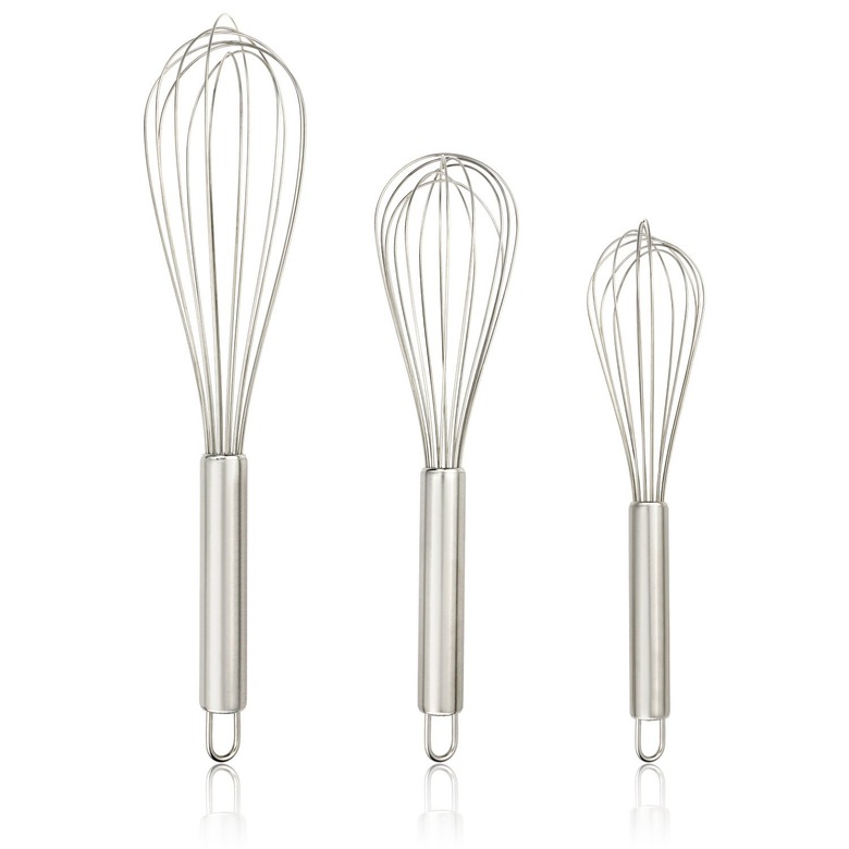 Whether you're whipping up a large batch of heavy cream by hand (hey, not all of us have KitchenAids) or making vinaigrette for one, these differently sized whisks are always-useful additions to your utensil drawer.