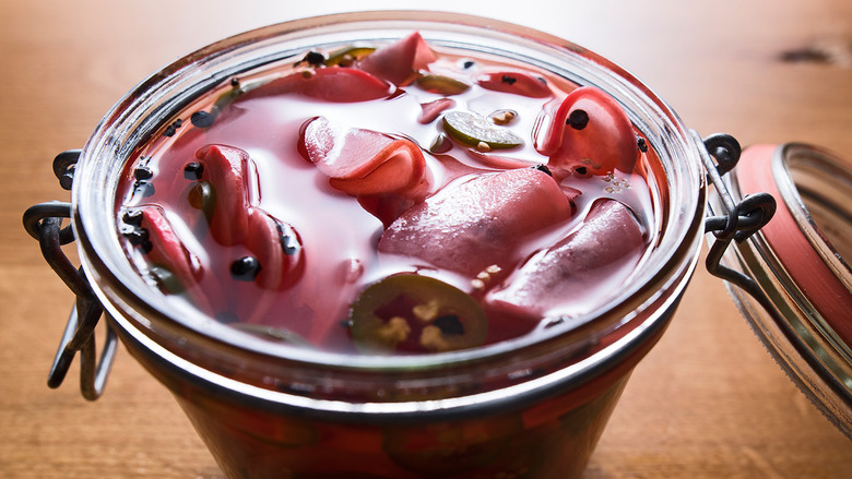 A basic brine for a quick pickle is equal parts vinegar and water, which can be customized with herbs and other spices to taste. You can also adapt this recipe for almost any seasonal vegetables, like cucumbers, peppers, radishes, beets, turnips, rhubarb and green beans. Add to a charcuterie board or even a Bloody Mary.