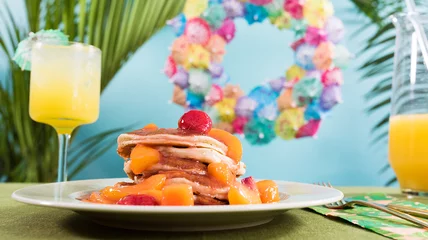 One way to streamline menu planning is to use ingredients you already have on hand, like pancake mix, eggs and maple syrup. Another pantry staple that makes life easier? DOLE® Canned Pineapple Juice. You can use it to make brunch cocktails like an Aloha Screwdriver. Or, give pancakes a gourmet twist by topping them with a Mixed Fruit and Ginger Sauce made with DOLE.