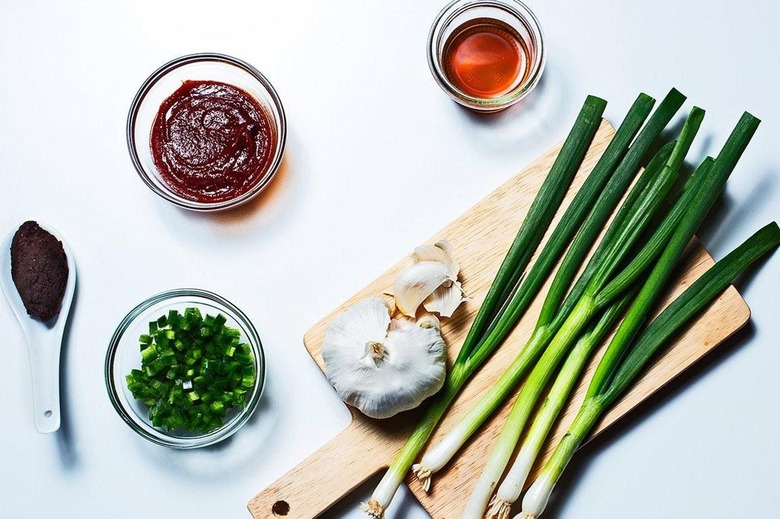 You're going to need more than just meat to round out the meal. Sticky bowls of steamed short-grain white rice are de rigueur; small dishes of sesame oil seasoned with coarse salt and black pepper, and umami-rich chile bean paste are perfect dippers. For garnishes, go for the lettuce-wrap trifecta: the chilled leaves of green-leaf lettuce, a tangle of thinly sliced scallions and rounds of raw jalapeños. Setting out a few cloves of thinly sliced garlic is never a bad idea.