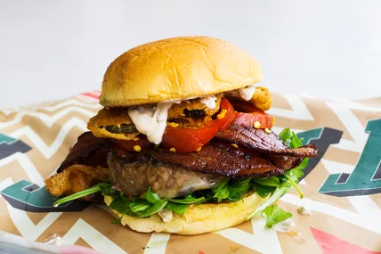 It all began when the team at Clinton Hall NY challenged us to dream up the ultimate burger, the result being this beauty that reflects our love of all things pickled. A toasted potato roll holds a six-ounce patty topped with aged cheddar, maple-glazed bacon, fried pickles, pickled cherry peppers and a cucumber remoulade to top it all off. It's a wild combination of salty, tangy, spicy and sweet that makes this, in our humble opinion, the perfect Test Kitchen-approved burger.