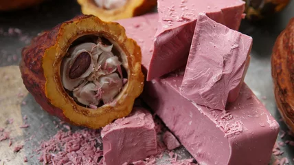 The rosy-hued chocolate was discovered by Barry Callebaut, the world's largest supplier of cocoa and chocolate products, and the company responsible for producing the chocolate for all of Nestlé and Hershey's sweet treats. The rich pink tone comes from a special type of cocoa bean found on the Ivory Coast, Ecuador and Brazil. A unique process developed by the company extracts a powder from the bean, which creates the ruby color.