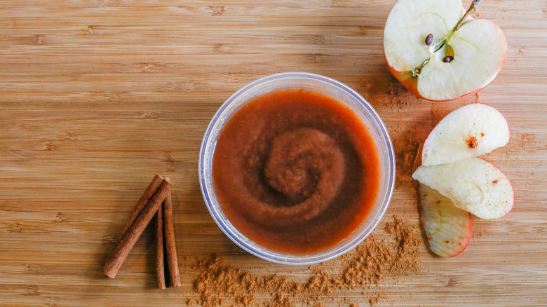 As you peruse supermarket shelves and farmers market stands in the fall and winter, you'll likely notice jars upon jars of a thick, dark brown, sweet condiment: apple butter. A tasty spread that's as delicious crowning a slice of toast as it is accompanying a wedge of sharp cheddar on a cheese plate (via Greatist), apple butter typically contains just a few ingredients, among them apples, sugar, and spices such as cardamom or cinnamon.