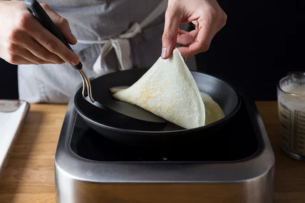 To get started, grab some peaches and get to work on a slow cooker peach butter. The spread cooks through the night, perfuming your dreams with scents of stone fruit, pink peppercorns and unicorns. Assuming you're able to sleep through delicious smells wafting through your nostrils, you'll want to guzzle this peach butter by the bucketful at first light. Serve it alongside crepes, fresh fruit and whipped cream for a DIY crepe bar. Crepes are the perfect vessel for this overnight brunch party, because the batter needs to be made the night before to sit anyway, so you and it can both rest through the night.