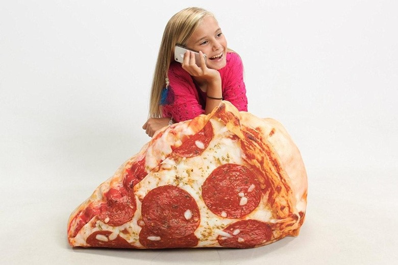 Sometimes, we just want to rest our heads on a giant pepperoni pizza, and this eerily photo-realistic bean bag is the answer to our prayers.