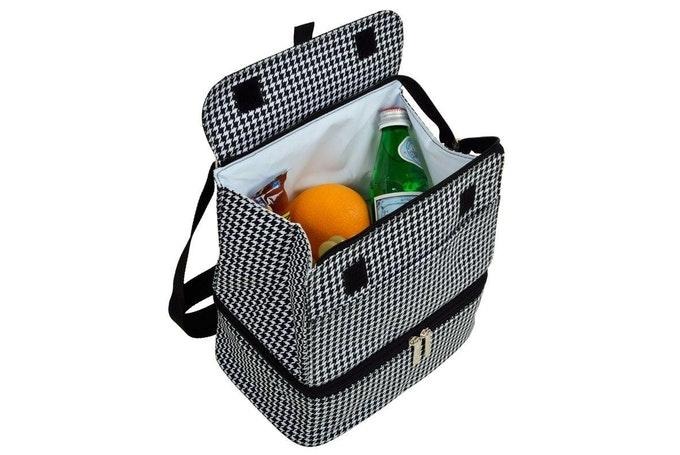 For the most elite lunchers, this multi-compartment, insulated tote has a flap hiding a set of silverware and salt and pepper shakers.
