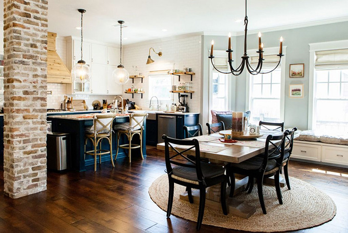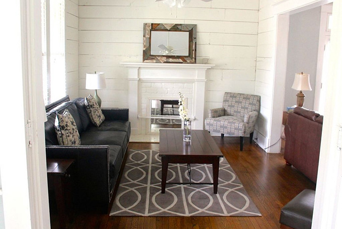 This classic fixer-upper has charmed us with its navy exterior and open layout. We're totally obsessed with the kitchen where subway tile and bay windows rule. French doors ensure privacy but also a sense of openness perfect for a vacationing family. We're seeing Magnolia-style sensibility in every inch of this home, from a shiplap bathroom to charming details in every room. Seriously, why aren't we there already?