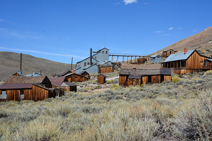 Bodie was a late-1800s gold mining town that has been preserved in a state of "arrested decay" as a California State Historic Park. More than 50 buildings are still standing, and a handful are open to the public, including the mill, where gold was extracted from quartz and which is accessible by guided tour three times a day. The town is 75 miles southeast of Lake Tahoe; during summer months, the park offers a nighttime Ghost Walk and Ghost Mill Tours that feature legends and ghost stories about the town.