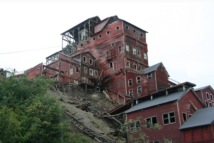 Located five miles north of McCarthy, Alaska, the early 20th-century copper mill town of Kennecott is listed on the National Register of Historic Places. The main attractions in the 2,800-acre property are the photogenic 14-story concentration mill, power plant and leaching plant, which are accessible only by guided tour. The interiors of these structures have been stabilized but not restored, providing a rare glimpse into the area's past. Of the 16 historical buildings and ruins that make up this ghost town, a handful have been restored, including the post office and the store, which house the visitor center. Harsh winters make Kennecott inaccessible, so the town's visitor center is open only from Memorial Day to Labor Day.
