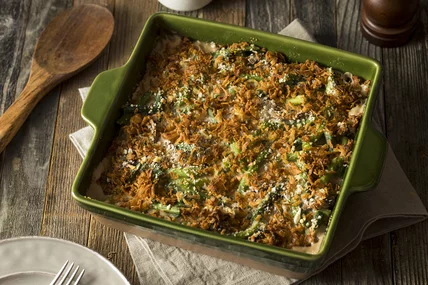 He's referring to green bean casserole, that holy trinity of canned beans, cream of mushroom soup and jarred french-fried onions. It's the side dish we lovingly refer to as the extended family of holiday foods: a love-it-or-hate-it item we get to see only once a year.