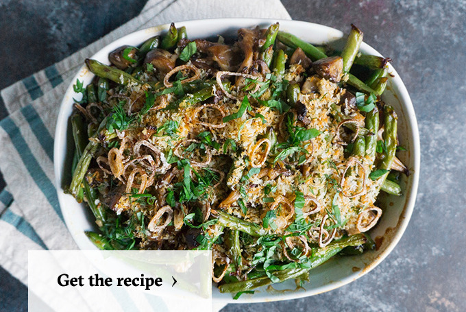 It's hard to find something that fried onions and a creamy mushroom sauce won't improve. If green beans aren't your preferred vegetable, do what Schor occasionally does and swap them out for other fall produce, such as roast Brussels sprouts or broccoli.
