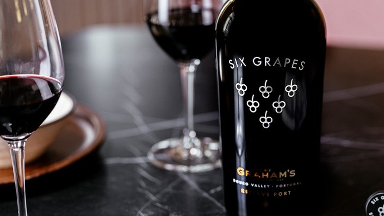 Graham's Six Grapes is the signature reserve wine of the historic Graham's winery, with origins dating back over two hundred years. The two-year barrel-aged $25 ruby port wine has layers of black fruit, toasted nutmeg, allspice, and dark chocolate.