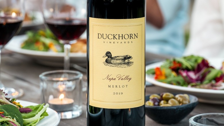 Duckhorn Napa Valley Merlot includes fruit from the cool-climate Carneros region of Napa, producing fruit with natural freshness and energy. The resulting $53 wine has bright acidity to cut through the meal's richness, with black plum, red berry, and spice.