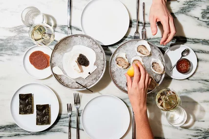 Dress to the nines at Flora Bar, Ignacio Mattos's stunning restaurant on the ground floor of the Met Breuer, where he is offering both six- and seven-course tastings. Raise your Champagne glass over plates of burrata with sea urchin and duck breast seared with foie gras.