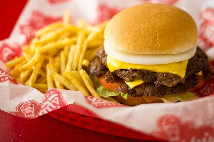 Wholesome inspiration aside, the burgers speak for themselves. Whereas most fast-food-style burgers are thin-patty affairs, Freddy's takes it one step further by smashing down its patties onto the griddle so that they're even slimmer and crispier with lacy crags around the edges.