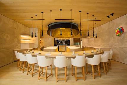 It's why guests will instead walk into a 10-seat exhibition kitchen (spearheaded by Zabala), where they'll encounter just as many chefs as there are place settings. Throughout the 20-plus-course meal, diners will be encouraged to interact with the cooks plating each dish, which can range from "uni and Parmesan papyrus" to a modernist take on pan con tomate. Both wine (ranging from "unique" to "prized" to "vintage" varietals) and nonalcoholic pairings (house-made tinctures designed to mimic the flavor profiles and experiences of real wines) are also available.