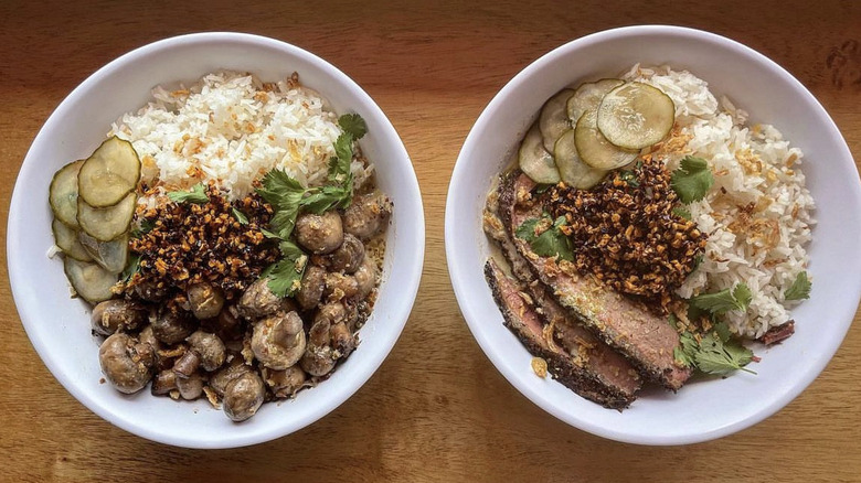 Start your feast with shareable appetizers plates of curry queso and chips, or pulled pork nachos topped with honey sriracha. The main event comes with the curry BBQ bowls; there's the Good Luck Cluck (smoked chicken thighs with yellow curry); the Tony Porker (smoked pulled pork with Penang curry); and the Magic Mushroom (marinated button mushrooms with green curry), among others. Sides of curry creamed corn and cucumber slaw keep the creativity coming and lead to the grand finale: the Flan Solo, a buzzy flan topped with cold brew and whipped cream.