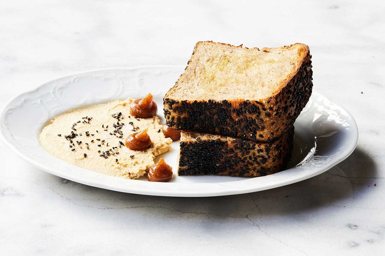 While Menashe and Gergis shy away from the confines of tradition across the board, there is one exception, Menashe says: the hummus. It's served simply adorned with a dollop of masabacha, or lightly smashed chickpeas in a tahini dressing and both green and red chile pastes. A less traditional option is to get it topped with duck nduja, Jerusalem spice mix and herbs.
