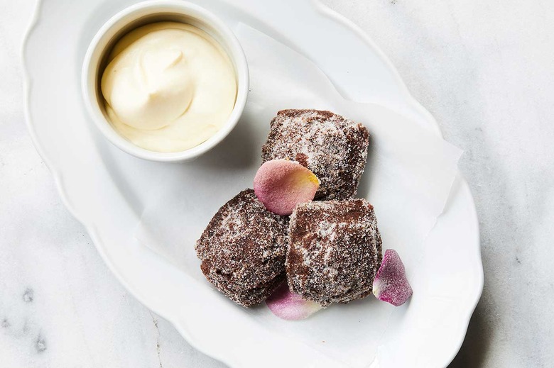 Rose clove chocolate doughnuts with sherry diplomat cream.