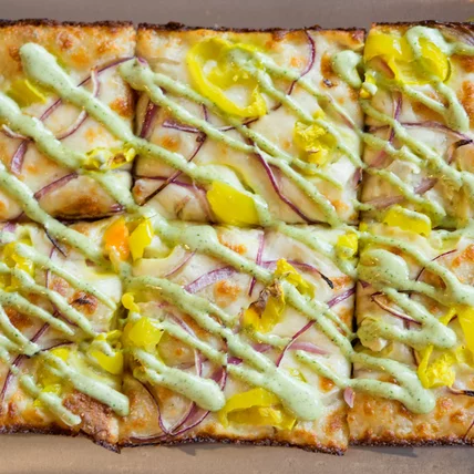 Brooklyn's beloved square pie destination Emmy Squared is now serving the East Village. Many of the pies made the trip across the East River, including The Emmy, with banana peppers, red onion, ranch and side sauce. There are a few newcomers like the Emmyletta with mortadella, pepperoni and an olive salad, plus the Curry Row with Brooklyn Delhi aachar, onions, peppers, cauliflower and chutneys.
